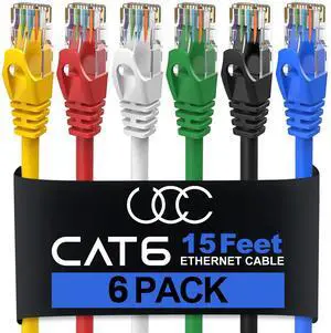 Cat6 Ethernet Cable, 15 Feet (6 Pack) LAN, utp Cat 6, RJ45, Network Cord, Patch, Internet Cable - 15 ft