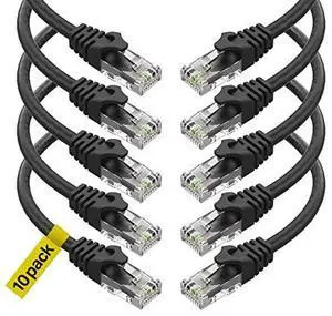 Ultra Clarity Cables Cat 6 Ethernet Cable 10 FT (10 Pack), Cat6 Patch Cable, High Speed 10Gbps 500Mhz Ethernet Cable Network Cord, RJ45 LAN Internet Cable for Computer Modem Router PS4/5 Xbox -Black
