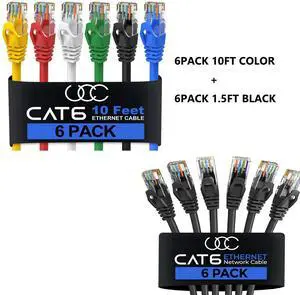 CAT6 Ethernet Patch Cables 6 Pack, 10FT Color and 1.5FT Black