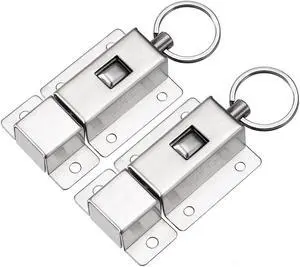 Door Barrel Bolt, Stainless Steel 304 Ring-Pull Spring Loaded Auto Sliding Lock, 2 Pcs