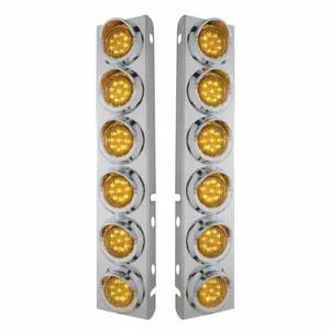 United Pacific 33608 Air Cleaner Light Bar, Front, Stainless Steel, with Bracket, Clearance/Marker Light, Amber LED and Lens, with Chrome Bezels and Visors, 9 LED Per Light, for Peterbilt Trucks