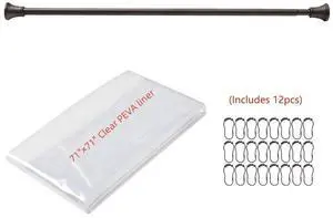 Utopia Alley Adjustable 72-Inch Rust-Proof Aluminum Shower Curtain Tension Rod with 71×71 Inch Clear PEVA Liner & 12 Heavy-Duty Hooks, No-Drill Bathroom Set, Oil Rubbed Bronze