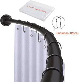 Utopia Alley Adjustable 4572 Inch Single Curved Shower Rod Set with 71×71 Inch Clear PEVA Liner & 12 Shower Hooks, Rustproof Aluminum Drill-Mounted Shower Rod, Extra 30% Space, Black
