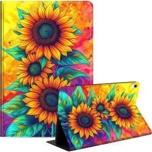 Case for iPad (A16) 11th Generation 11 Inch 2025/iPad 10th Generation 10.9 Inch 2022, Slim PU Leather Stand Cover with Auto Wake/Sleep, Multi-Angle Viewing & Shockproof, Three Sunflowers