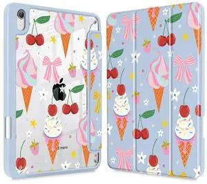 Lepeoac for Slim Case for iPad mini 7 (A17 Pro, 7th Generation) 2024 / iPad mini 6 (6th Gen) 8.3 Inch, [Built-in Pencil Holder] Clear Back Shell + Auto Wake/Sleep, Ice Cream-Bows-Blue