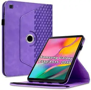 Varohix Case for Samsung Galaxy Tab A 10.1 2019 (SM-T510/T515),360 Degree Rotating PU Leather Folio Protective Case,Card Holder&Shoulder Strap for Woman Man,Purple