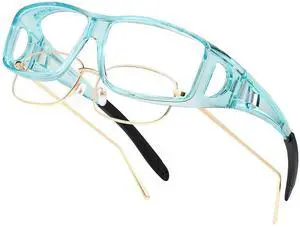PUBOWT Fit Over Blue Light Blocking Computer Reader for Women Men Anti-Blue Light Filter Wrap Around Eyeglasses (Transparent Blue)
