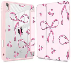Mektron Case for iPad Air 11 inch (M3 2025 7th /M2 2024 6th), Compatible with iPad Air 10.9" (2022 5th Gen /2020 4th Gen), Buit in Pencil Holder with Shockproof Clear Shell, Bows C360