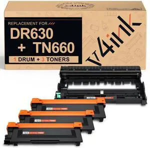 v4ink Compatible DR630 TN660 Set Replacement for Brother DR630 Drum TN660 Toner Cartridge (1D + 3T) for Brother HL-L2300D L2320D L2360DW L2380DW MFC L2700DW L2720DW L2740DW Printer