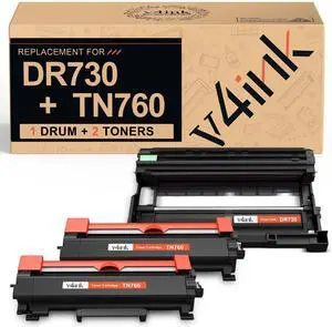 v4ink Compatible DR730 Drum and TN760 Toner Cartridge Set Replacement for Brother DR730 TN760 TN730 (1 Drum+ 2 Toner) for Brother HL L2350DW L2370DW L2390DW MFC L2690DW L2710DW L2717DW L2750DW Printer