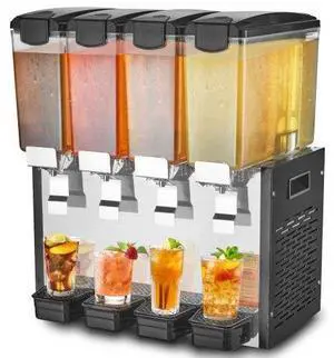 Commercial Beverage Dispenser, 4 Tanks 10 L / 10.6 QT Per Tank Juice Dispenser, 430W Stainless Steel Ice Tea Drink Machine with 45°F-54°F Cooling Temperature, for Cold Drink Restaurant Bar Party