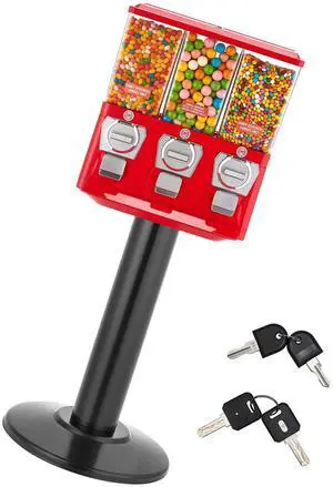 VEVOR Candy Vending Machine, Triple Compartment Candy Vending Machine with Stand, Gumball & Candies Vendings Machines with Built-In Cash Box, Detachable, Vintage Candies Dispenser for Shops, Arcades