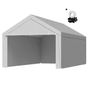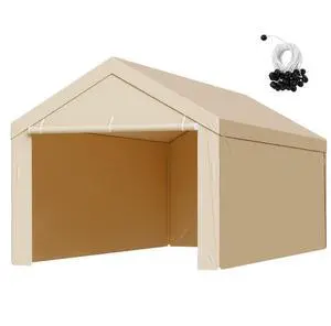 VEVOR Carport Replacement Canopy, 10 x 20 ft Potable Garage Tent Top Tarp with Sidewalls, UV-Resistant & Waterproof, Heavy Duty Car Shelter Tarp with Ball Buggees, Beige, Frame Not Included