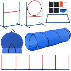 VEVOR Dog Agility Training Equipment 5 PCS Set with Hurdles Tunnel Jump Ring