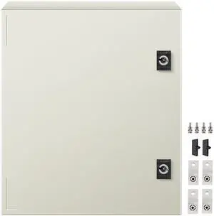VEVOR Electrical Enclosure, 20'' x 20'' x 6'', UL Certified NEMA 4 Outdoor Enclosure, IP65 Waterproof & Dustproof Cold-Rolled Carbon Steel Hinged Junction Box for Outdoor Indoor Use, with Rain Hood