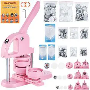 VEVOR 3-IN-1 Button Maker 1/1.25/2.28 inch Pin Maker Ergonomic Arc Handle Punch Press Kit Pink