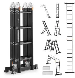 Multi-Purpose Folding Ladder 7-in-1 3 Step 12ft Reach Height for Work