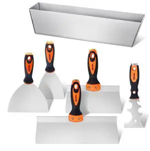 VEVOR 6PCS Drywall Knife Set , Stainless Steel Paint Scraper Putty Knife 3'' 4'' 6'' 8'' 12'' with Mud Pan