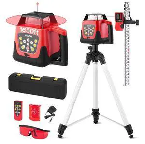 Vevor Rotary Laser Level Kit, 1650ft 360-Degree Self Leveling Red Horizontal Laser Transit,with Tripod,Receiver,Remote Control, Scale,Toolcase, IP66 Waterproof, 0.80in/100ft Precision for Construction