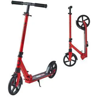 VEVOR Kick Scooter for Kids Ages 8+, Teens & Adults, 2-Wheel Toddler Scooter with Adjustable Height Handlebar, Wide Anti-Slip Deck, Foldable Lightweight for Boys & Girls up to 220 lbs, Red + Black