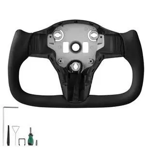 Vevor Steering Wheel for 2016-2023 Tesla Model 3, Carbon Fiber Steering Wheel D-Shaped Flat-Bottom with Heating Function, Leather Grip with Non-Slip Texture, Accessories Replacement for Model 3, Black