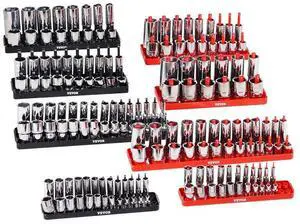 VEVOR Socket Organizer Set 8PCS High-Rod Socket Tray Black & Red for Metric SAE