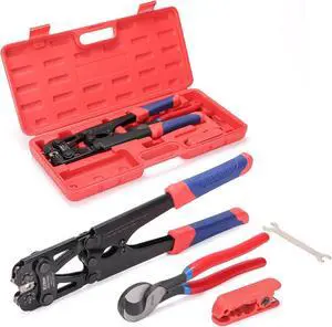 PEX Crimping Tool,1/2Inch,3/4Inch Combo Crimp Copper Rings Tool, Conforms to ASTM F1807 Standards,with Go-No-Go Gauge &Cutter