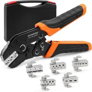 iCrimp Ratchet Wire Crimping Tool Set w/ 5 Interchangeable Jaws for Insulated and Non-Insulated Terminals AWG20-2, Wire Stripper included