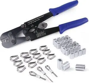 Yangoutool Wire Rope Crimping and Cutting Kit: Suitable for 1/16inch (1.59mm) to 1/8inch (3.18mm) Steel Cable Swaging, Includes 100pcs 1/8inch Aluminum Double Barrel Sleeves and 50pcs M3 Loop Thimbles