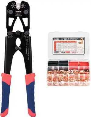 iCrimp Battery Cable Lug Crimping Tool Kit for Copper Lugs Awg 8-1/0,Battery Cable Crimper with 90pcs Copper Battery Lugs/Heat Shrink Tube