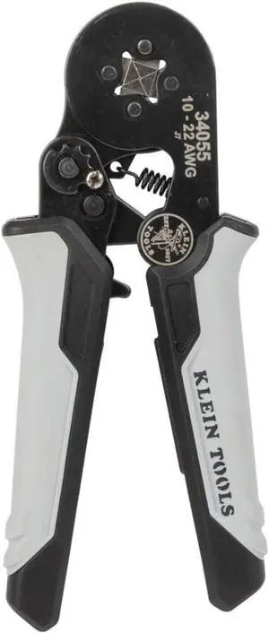 Klein Tools 34055 Ferrule Crimping Tool, Square Crimper Pliers for 10 to 22 AWG Wire Terminals, Built-In Adjustable Ratchet, for Electrical Work