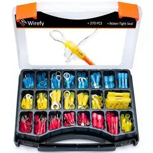 Wirefy Heat Shrink Wire Connectors Kit - Marine Grade Electrical Connectors - Automotive Butt Connectors - Insulated Ring, Spade, Fork, Hook Crimp Terminals - 22-10 Gauge - 270 PCS