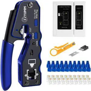 RJ45 Crimp Tool Pass Through Ethernet Crimper Kit Cat5 Cat6 Crimping Tool Kit, Ethernet Crimping Tool Kit RJ45 Crimper