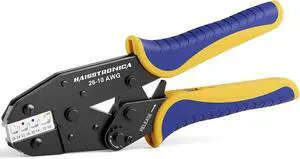 haisstronica Crimping Tool For Heat Shrink Connectors-AWG 26-10 Ratchet Wire Terminal Crimper-Ratcheting Crimper Tools-Available For Insulated Nylon Connectors and Electrical Wire Connectors HS-8327