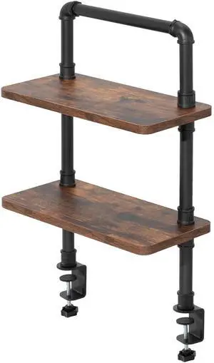 VIVO Clamp-on 16 inch 2-Tier Decorative Industrial Pipe Shelves, Vintage Brown