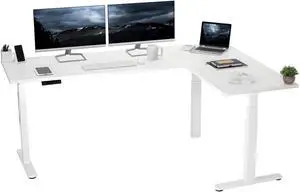 VIVO White Electric 63" x 47" Corner Standing Desk