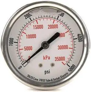 ZORO SELECT 4CFU6 Commercial Pressure Gauge, 0 to 5,000 psi, 2 1/2 in Dial, 1/4