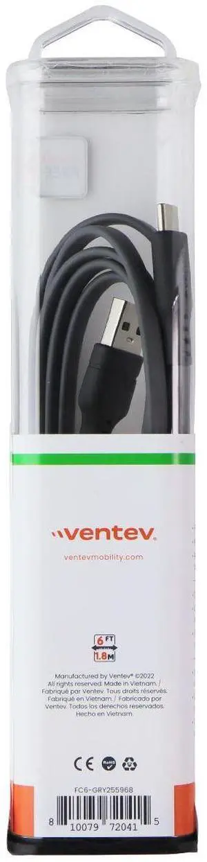 Ventev 6FT Braided High-Speed USB-A to USB-C Cable - Gray
