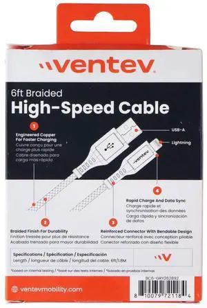 Ventev 6-Foot Braided High Speed USB-A to 8-Pin Cable - Gray