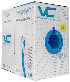 Vertical Cable Cat5e, 350 MHz, UTP, 24AWG, 8C Solid Bare Copper, 1000ft, Bulk Ethernet Cable - 151 Series, Blue