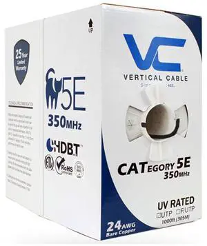 Vertical Cable Cat5e, 350 Mhz, UTP, UV Jacket, Outdoor, CMX, 1000ft, Bulk Ethernet Cable, Black