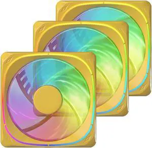Vetroo 3-Pack CF120 120mm Case Fan 5V 3 PIN Addressable RGB MB Sync PC Cooling Fan W/ Yellow Fan Frame for Radiator / CPU Cooler / Computer Case