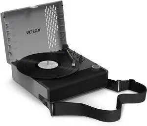 Victrola Revolution GO Portable Vinyl Record Player, Battery-Powered Bluetooth Turntable, 12 Hour Battery Life, 3 Speed Belt-Driven Record Player, RCA Output, 3.5mm Headphone Jack (Black & Grey)