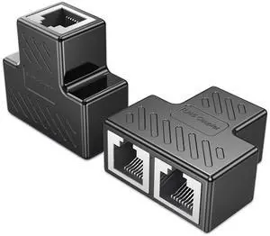 Vszerda RJ45 Coupler 1 to 2 Port 2 Pack, Ethernet Extender in Line Coupler Cat7 Cat6 Cat5e Cable Connector Ethernet Adapter Female to Female, Black
