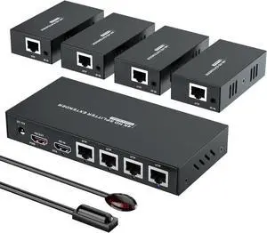 Vszerda HDMI Extender Splitter 1x4 1080P@60Hz Over Cat 5E/6/7 Ethernet Cable 50m (165ft) Support EDID Copy POC Function (1 in 4 Out)