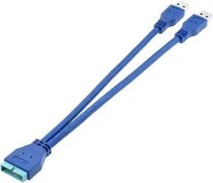 Vszerda Motherboard USB 20pin Male to 2 x USB 3.0 Type-A Male Adapter Cable,USB 20pin to 2 x USB 3.0 Male Splitter Cable - 10inch
