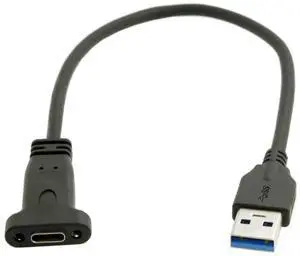 Vszerda USB C Cable,USB 3.0 Type A Male to Type C Female Data Cable 20cm with Panel Mount Screw Hole