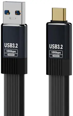 Vszerda Cable USB3.1 Type-A Male to Type-C Male 10Gbps Flat Slim FPC USB-C Data Power Cable 5V3A for Laptop Phone Disk (20cm)