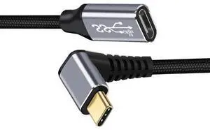 Vszerda USB C Cable USB 3.1 Type C Male to Female 90 Degree UP Angled Extension Data Cable 10Gbps 100W with Sleeve for Laptop Phone 2.0M