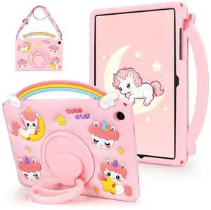WESADN for iPad 6th 5th Generation Case 9.7 inch for iPad Pro 9.7'' Case Kids Girls Cute Cartoon Rainbow Unicorn Tablet Cover with Shoulder Strap Rotating Stand Handle i-Pad Air 2 Cases 2018, Pink